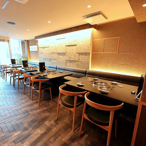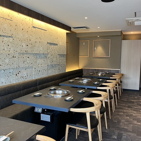 落ち着いた上質な内観が自慢です。個室もご用意しておりますので、プライベートな時間を重視されるお客様に最適です◎デートや接待、記念日など、特別な日を過ごすのにふさわしい空間となっております♪テラス席やテーブル席も完備し、ゆったりと寛ぎながら絶品の和牛をご堪能いただけます。心ゆくまで優雅なひとときをお過ごしください。