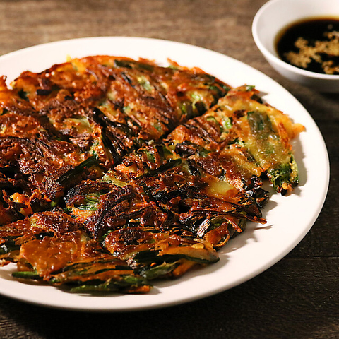 当店の「海鮮チヂミ」は、新鮮な海鮮の旨味と、カリッとした香ばしい焼き加減が自慢です。生地はもっちりとした食感で、特製のタレにつけて頬張れば、豊かな磯の香りが口いっぱいに広がります。ビールやチャミスルとの相性は抜群!お酒のお供はもちろん、お子様にも喜ばれる一品です。食卓を彩る喜びを感じてください!