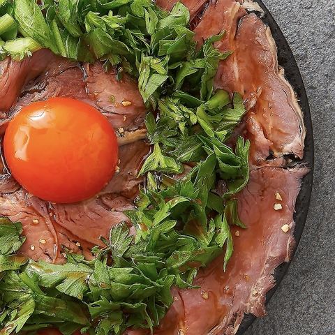 新名物「揚げ葱とガーリックの牛タンユッケ」と「春菊の牛タンすき焼きユッケ」が大人気!初めての方は両方を楽しめる「ハーフ&ハーフ」がおすすめ★お気に入りを見つけてください♪