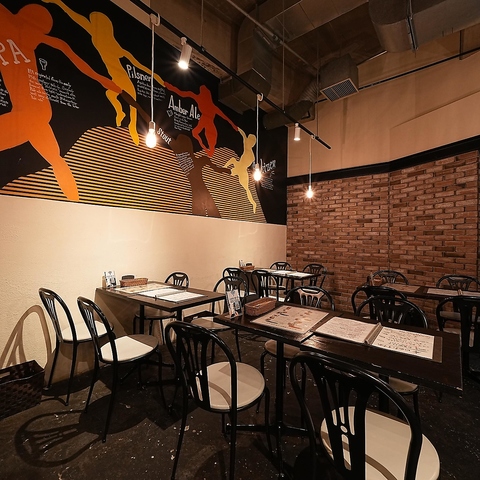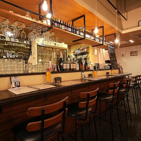 お一人様でもじっくり楽しめるカウンター席を完備。デートでの横並び利用も雰囲気抜群です♪肩肘張らずリラックスできる空間で、美味しいクラフトビールと料理をご堪能ください。お一人様から大人数の宴会まで、幅広くご利用いただけます!