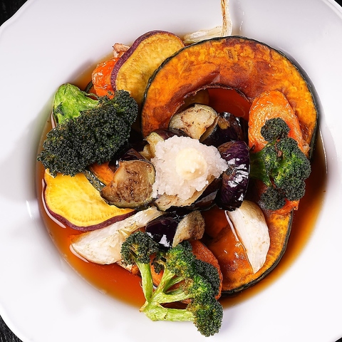 当店が自信をもっておすすめする一品!毎朝、農家さんへ直接集荷してきた新鮮なお野菜をさっと揚げ、特製のお出汁に浸しました。季節によって変わる旬の野菜の美味しさを存分にお楽しみいただけます。あっさりとしていながらも旨味たっぷりな一皿です。