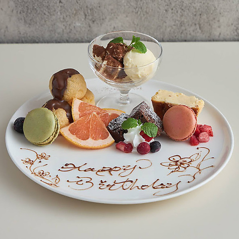 デザートプレートを1650円にて御用意できます!チョコペンでメッセージをお書きします