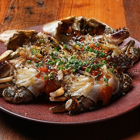 函館直送の新鮮な国産カニを贅沢に使用した、当店自慢のカンジャンケジャン。濃厚なカニ味噌と甘みのある身の旨味を存分に引き出しました。高級感あふれる逸品で、特別なひとときにふさわしい味わいをお楽しみいただけます。