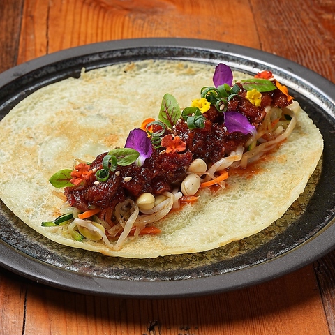 桜の香りが漂う上質なユッケと彩り豊かなナムルを、宮廷伝統のクレープで包んで味わう逸品。繊細な味わいと華やかな見た目が融合し、贅沢で優雅なひとときを演出します。上品な韓国料理の魅力をお楽しみいただけます。