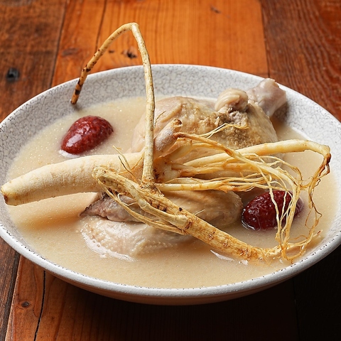 厳選された薬膳素材を贅沢に使用した当店自慢のサムゲタン。鶏の旨味と漢方の深い風味が溶け合い、身体の内側から温まる一品です。栄養豊富で滋養に満ちた味わいは、寒い季節や疲れた日にもぴったり。上品で優雅なひとときを演出する、贅沢な韓国伝統料理です。