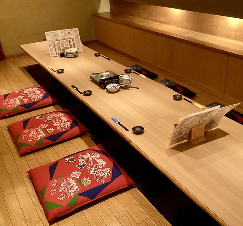 【少人数でゆったり過ごせる|多彩な座席を完備】カウンター席やテーブル席・ソファ席・個室など多彩な座席をご用意しております。ゆったり寛げる配置で、友人同士の飲み会やデート・女子会など幅広いシーンに対応可能です。市場直送の新鮮な刺身や炉端焼き・原始焼きなどこだわりの海鮮料理をお楽しみください。