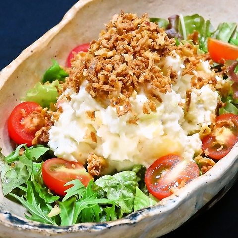 粗めに潰したじゃがいもと、カリカリ食感のトッピングがクセになる!食感楽しい「ザクザクポテトサラダ」