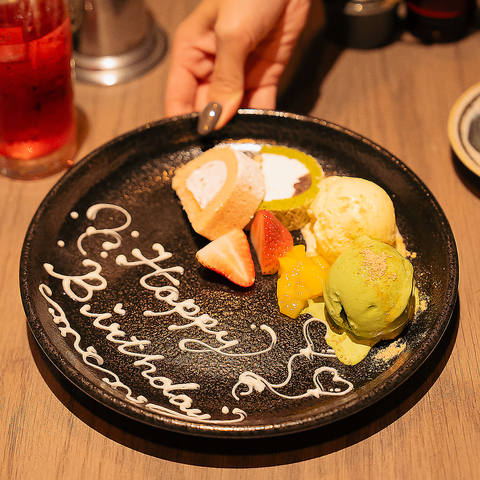 誕生日や記念日、打ち上げなど、特別な日を彩るお手伝いをいたします!当店では、サプライズにぴったりなデザートプレートをご用意しております。心を込めたメッセージを添えて、思い出に残るひと時を演出します♪大切な人との大切な時間を、当店でお過ごしください。特別な瞬間を一緒に祝いましょう!皆様のご来店を心よりお待ちしております!