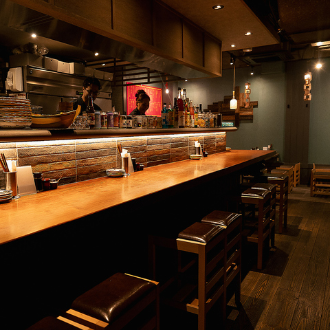 鉄板の音と香りが食欲をそそる渋谷の人気居酒屋。活気ある店内は仕事帰りの一杯や二次会にも最適。カウンター席で一人飲み、テーブル席で仲間とワイワイ、どんなシーンにもマッチする空間です。