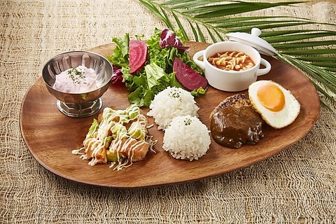 当店名物のロコモコは、厳選したハンバーグと特製グレービーソースが絡み合う逸品です。新鮮な魚介を特製ダレで和えたアヒポキはお酒のお供に最高!ランチはもちろん、ディナーのコースでも本場ハワイの味わいをお届けします。