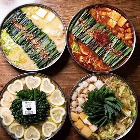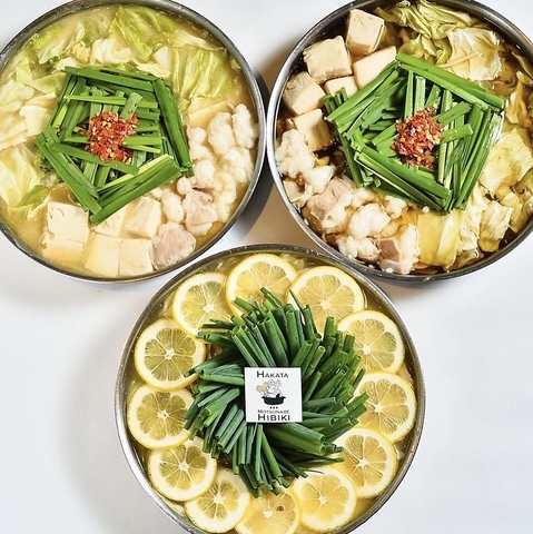 博多名物のもつ鍋は、他店では味わえない特別な逸品をご用意。北海道産の昆布を使った当店自慢の「響オリジナル」や、さっぱりとした風味が女性のお客様に大人気の「レモン鍋」など、バラエティ豊かなメニューを取り揃えております!