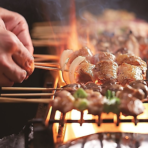 炭火香る焼き鳥が食べ放題!旨味あふれる串を心ゆくまで堪能。食べ飲み放題コース2500円~