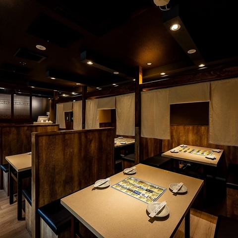 最大10名様までご着席可能のテーブル席半個室。女子会、合コン、少人数での飲み会など様々なシーンでご利用いただけます。温かみのある和の空間で、お仲間同士ごゆっくりお寛ぎください。