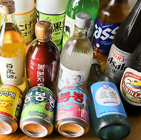 計100種類以上もの多種多彩なドリンクを揃えております!特に韓国のお酒が豊富で、チャミスルやマッコリなど人気のドリンクをご用意◎アルコールだけでなく、本場の屋台気分を味わえる缶ジュースもあり、韓国の雰囲気をたっぷり感じられます♪