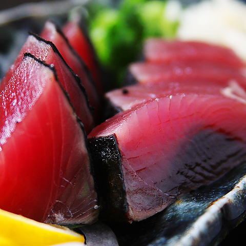 ほんのりあたたかく、わらの香りが堪らない!!定番の鰹をはじめ、かんぱちやサーモン、さわらなど他では味わえないわら焼きも◎魚だけではなく、カマンベールチーズやベーコンもご用意しております