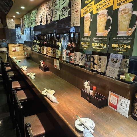 目の前に焼酎や梅酒が並ぶ雰囲気抜群のカウンター!少人数におすすめ!