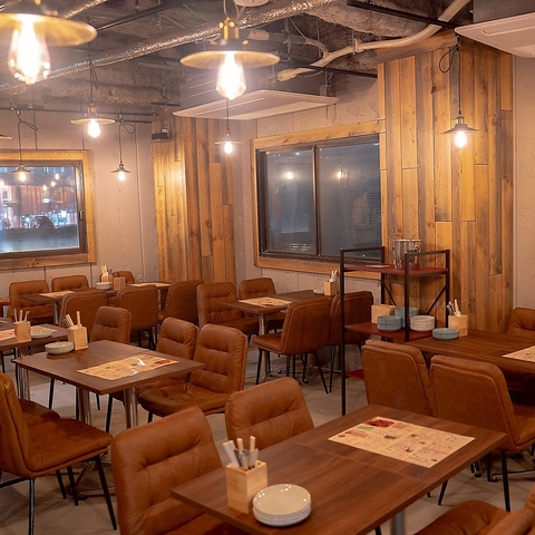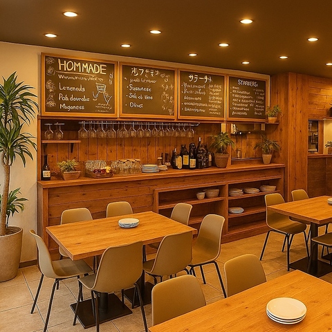 やわらかな照明が心地よいおしゃれな店内は、木のテーブルが温かみを感じさせます。デートや友人との食事にぴったりの空間で、リラックスしながら美味しい料理を楽しめます。特別なひとときを演出するための理想的な場所♪ぜひ、素敵な時間をお過ごしください。