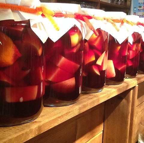 フルーツをふんだんに使用して24時間以上漬ける、一瓶ずつ瓶詰でご提供する自家製サングリアもオススメ◎