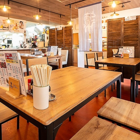 | テーブル | 4名様×3 | お子様連れのご家族やお友達同士でワイワイ過ごせるお席です◎店内にはその日のおすすめメニューも掲示されています♪ |