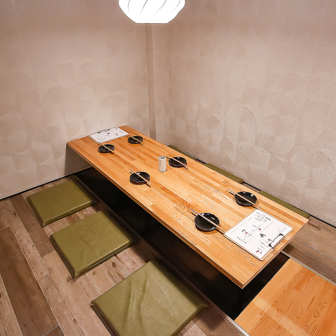 | 掘りごたつ | 6名様×4 | 開放感あふれる店内では、掘りごたつ席に座りながら焼き鳥を楽しむこともできます。明るい雰囲気が心を和ませ、宴会も盛り上がること間違いなし!居心地のよい空間でドリンクを片手に、食事と会話を満喫してください◎ |