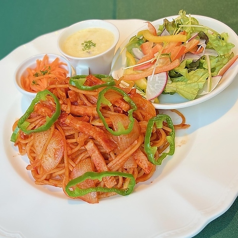 サラダ・人参ラペ・スープ・ナポリタン・ドリンク