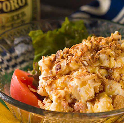居酒屋定番ながらも、当店の「俺のポテトサラダ」は自家製で、他にはないこだわりが詰まった逸品です。ゴロゴロとした食感とクリーミーな口溶けが絶妙に調和し、豊かな風味がお酒の味をさらに引き立てます。箸休めにも、じっくり日本酒と合わせるお供にもおすすめです。ぜひお試しください!
