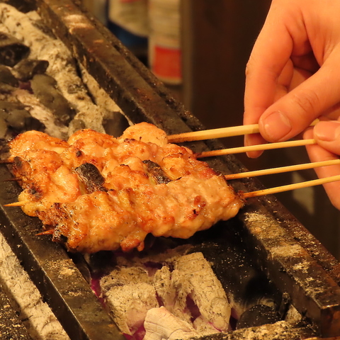 炭火で旨味をギュッと閉じ込めます。炭の香りをまとった鶏肉を一口噛めば溢れ出す肉汁をお楽しみください