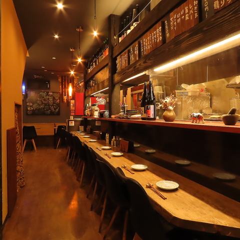 温かみのある照明に照らされた長いカウンター席はまさに大人のための特等席です。目の前の焼き場から漂う、炭火の香ばしい匂い。ライブ感あふれる光景を肴に、選び抜かれた日本酒を傾ける。そんな、日常を少しだけ格上げしてくれる時間を。お仕事帰りの一杯や大切な方との語らいに。