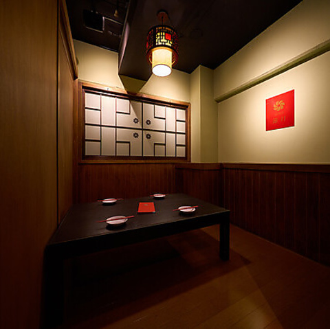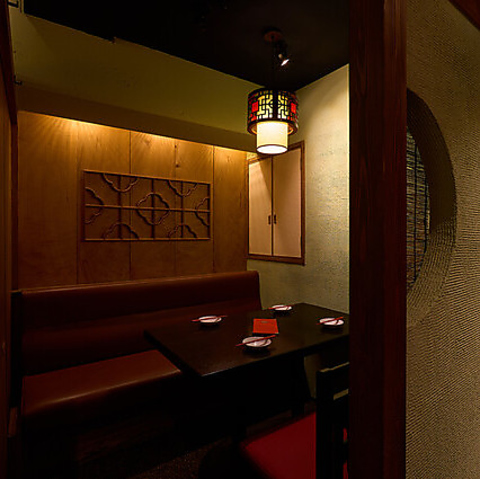 中国風のスポットライトで異国感漂う空間は、落ち着いてゆったりと過ごせる雰囲気が人気!テーブルの半個室と座敷の個室がございます。普段使いはもちろん、接待やご宴会、デートにも使えてシーンを問わずご利用いただけます。プライベートなひと時をゆっくりとお楽しみください。