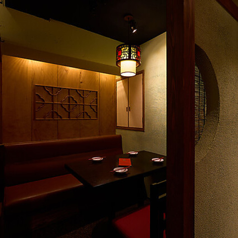 中国風のスポットライトで異国感漂う空間は、落ち着いてゆったりと過ごせる雰囲気が人気!テーブルの半個室と座敷の個室がございます。普段使いはもちろん、接待やご宴会、デートにも使えてシーンを問わずご利用いただけます。プライベートなひと時をゆっくりとお楽しみください。