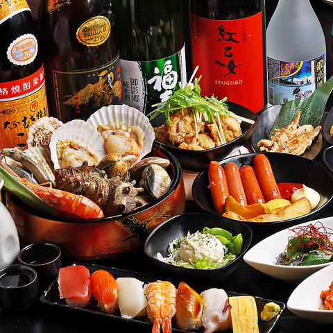 居酒屋メニューはもちろ炉端焼き、寿司、お造りも食べ飲み放題♪豊富なメニューで満足できる事間違いなし!!
