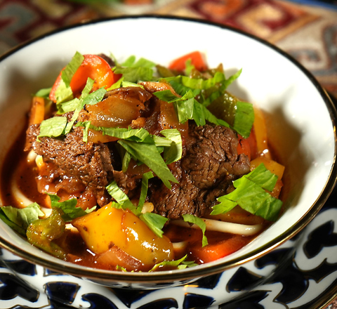 現地の料理人が腕を振るい、プロフ(ウズベキスタンのピラフ)やボルシチ(赤株のスープ)、シャシリク(ウズベキスタンのケバブ)など、本場の味を提供いたします♪※画像はイメージです