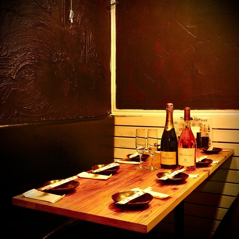 【デートにもオススメ♪】デートでのお食事にもオススメ☆二人の距離をギュッと縮める2人掛けのお席は、自然と会話が弾むこと間違いなし!美味しい焼き鳥などのお料理や日本酒、ワインなどのオシャレなお酒を楽しめば、楽しいひとときがもっと楽しくなるでしょう◎ぜひ特別な人との大切な時間をゆったりとお過ごしください★