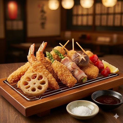 当店自慢のおすすめメニューは、串揚げと焼き鳥です!串揚げは、新鮮な野菜を毎日仕入れて使用しているため、野菜好きの方に大人気です◎焼き鳥は、鶏肉と豚肉を使用し、店内で捌いて1本1本丁寧に手で串に刺しています。タレと塩の2種類の味付けがございますので、お好きな味でお楽しみください♪人気の串を味わえるセットメニューなどもあり☆
