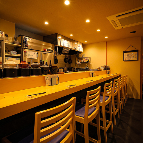 店主と話せるカウンター席は、お一人様でもお気軽にご利用いただける特等のお店です。お仕事帰りにふらっと、おひとり様でもお気軽にご来店いただけます。デートや記念日にぴったりの空間です。地酒も豊富に取り揃えておりますので、お食事に合わせてご注文頂けます。