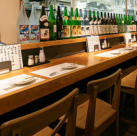 料理人の活気が伝わる特等席、カウンター席をご用意しております。お一人様や、お仕事帰りのサク飲みにも最適です。いつでも気軽にお立ち寄りいただき、こだわりの逸品とお酒を心ゆくまでお愉しみください。