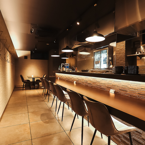お店の主役ともいえるカウンター席は、オープンキッチンならではのライブ感を間近で楽しめる特等席です♪目の前で職人が一品一品丁寧に調理する様子や、立ち上る香ばしい香りが食欲をそそります◎次に運ばれてくる料理への期待感が高まるのも、この席ならではの醍醐味♪五感すべてでお食事を満喫できる贅沢な場所です◎