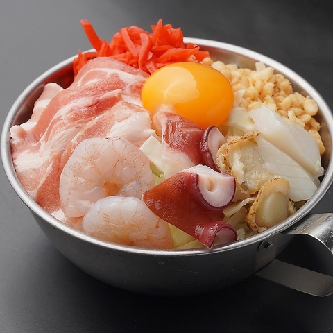 初めて月島もんじゃを体験されるお客様へ是非お召し上がりいただきたい”三九”お勧めコースです。国産最高品質の明太子を一腹使用した月島定番の明太子もんじゃを堪能できます。さらに、海鮮を特製バター醤油で味付けした鉄板と丹精こめたふわふわ生地のお好み焼きが味わえます。※こちらは系列店のメニューになります。