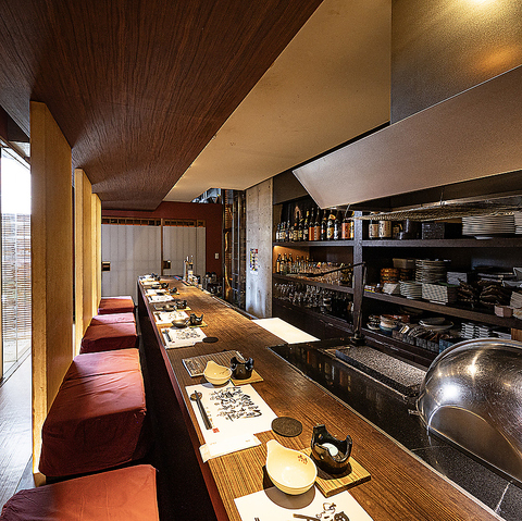 カウンター席では、職人の技を間近でご堪能いただけます。目の前で調理される料理の香りと音に包まれながら、職人の繊細な手さばきもお見逃しなく。