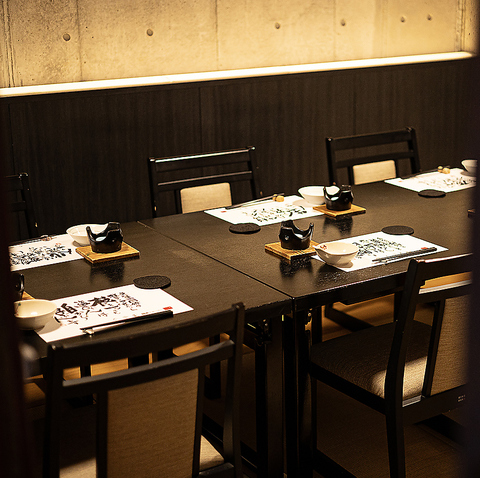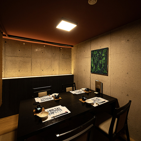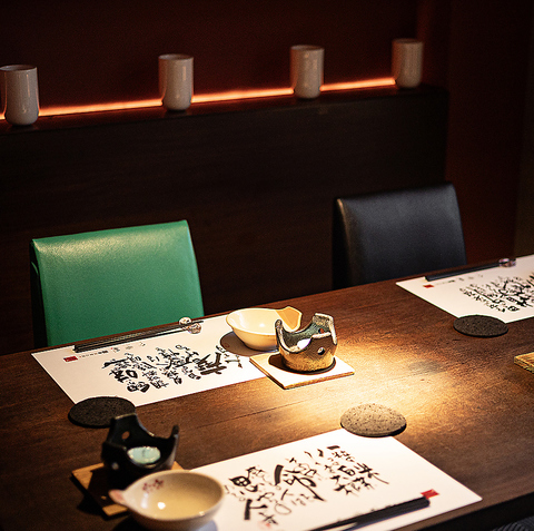少人数での接待やデートにぴったりな完全個室のテーブル席。木の温もりを感じる落ち着いた内装のお席で、ゆったりお過ごしいただけます。