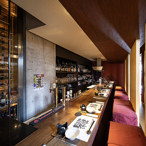ワインセラーや焼酎棚を眺めながら、お好みの銘柄を自由に選ぶことができるのもカウンター席の魅力。料理とのペアリングも存分にお楽しみください。