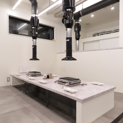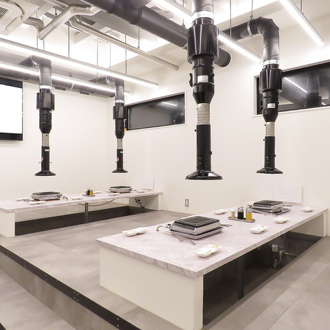 各テーブルには専用のグリルを設置し、お客様自身で焼きながら楽しめるスタイルを採用しています。煙や匂いを気にせず食事を楽しんでいただけるよう、強力な排気を各席に完備しています。「快適さ」にこだわった落ち着いた空間ですので、お子様も安心してご利用いただけます。ぜひご利用ください。