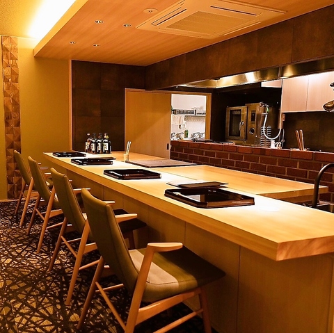 店内は心地よい照明が特別な時間を演出しています。カウンター席は6席。目の前では熟練の職人が繰り広げる見事な調理捌きもご覧いただくことが出来、料理の味わいも一層、引き立てます。毎日厳選した旬の食材を活かし、食材そのものの持つ美味しさをご提供する事を心がけております。その季節でしか味わえない美味しさを存分にご堪能ください