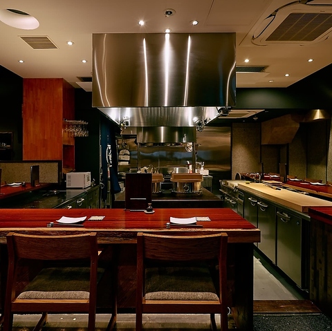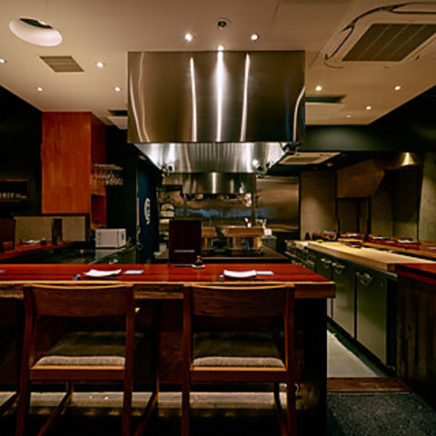 【美味しさを引き立てるオープンキッチンの魅力】臨場感を味わえるオープンキッチンでは、新鮮な素材が目の前で調理される様子を楽しみながら、お食事をお楽しみいただけます。木の温もりを感じるお席で1人でも少人数でも心地よい雰囲気の中で、ゆったりとした時間をお過ごしいただけます。