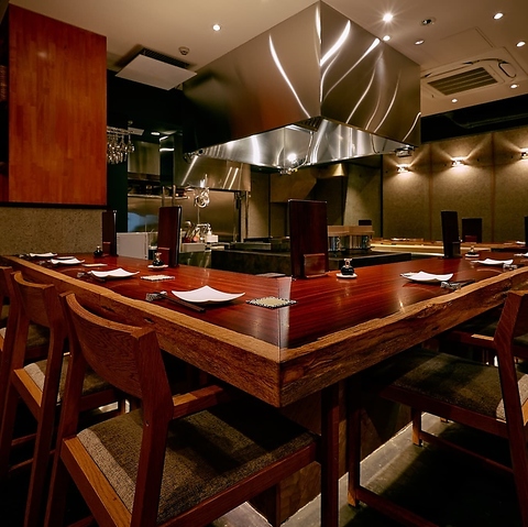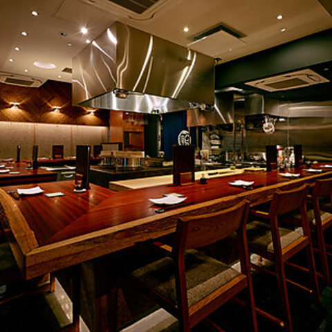 オープンキッチンをぐるりと囲むカウンターは、料理人の手元まで見えてライブ感抜群。