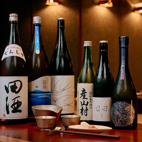 全国から料理に寄り添うものを厳選しています!銘柄はその時々で入れ替わるので希少酒と出会えることも…!