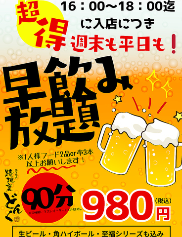 週末、平日関係なしに16時から18時迄に入店していただけたらOK!
