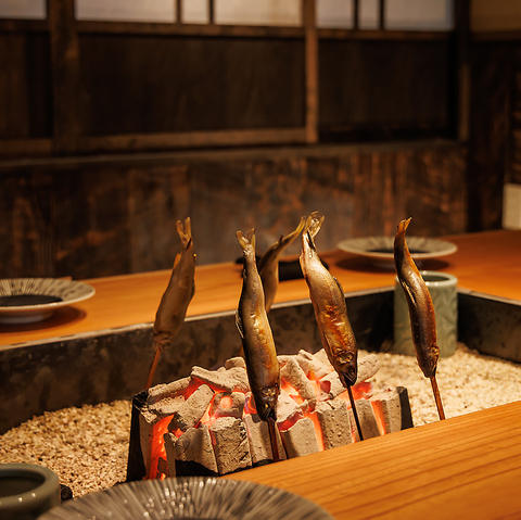 完全ご予約のお店だからこそ、お客様を最高の状態でお迎えしたく、ご来店される1時間前から鮎を焼き上げておりますので乾杯のタイミングで骨までお召し上がりになれる状態に仕上げております。