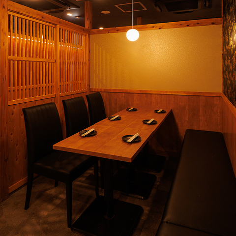 間接照明と和の装飾の数々が洗練された大人な空間を演出しております!扉付き完全個室となっておりますので周りを気にせずお楽しみいただけますよ!当店でゆっくりと羽を伸ばしてご寛ぎくださいませ♪(品川 個室 牛タン 焼き鳥 肉寿司 飲み放題 デート 宴会コース 記念日 接待 宴会)