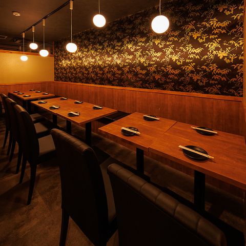光と影が織り成す上質空間。都会の喧騒を忘れ大人の時間をゆったり堪能できる空間をご用意!2名~6名の少人数様向けのテーブル席などゆったりと優雅なお時間をお過ごし頂けるこちらのお席は、デートをワンランク上の仕上がりに!サプライズ演出できるデザートプレートもご用意しております!!